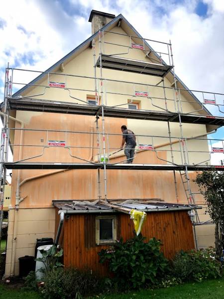 Notre entreprise vous propose aussi de réaliser vos travaux de peintures en façade extérieur, afin de donner une nouvelle jeunesse à votre habitation, certes la peinture n'a pas les même caractéristiques qu'un enduit projeté ou d'un ITE néanmoins cela coûte moins chères. La peinture extérieure est un bon compromis entre protection, esthétique et économies.